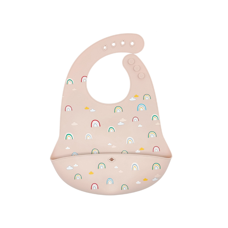 Bavetă de buzunar din silicon cu imprimeu Rainbow pentru hrănirea bebelușilor