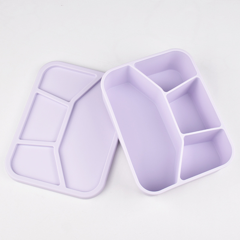 Cutie de prânz Bento din silicon cu 4 compartimente cu capac