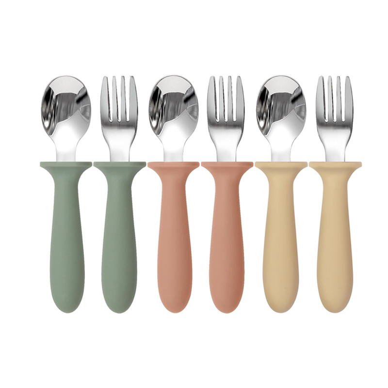 Set furculiță și lingură din oțel inoxidabil cu mâner din silicon